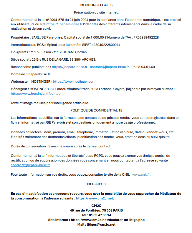Basé sur le secteur d'Épinal, chez JBE pare-brise nous vous assurons un service efficace et sans frais.